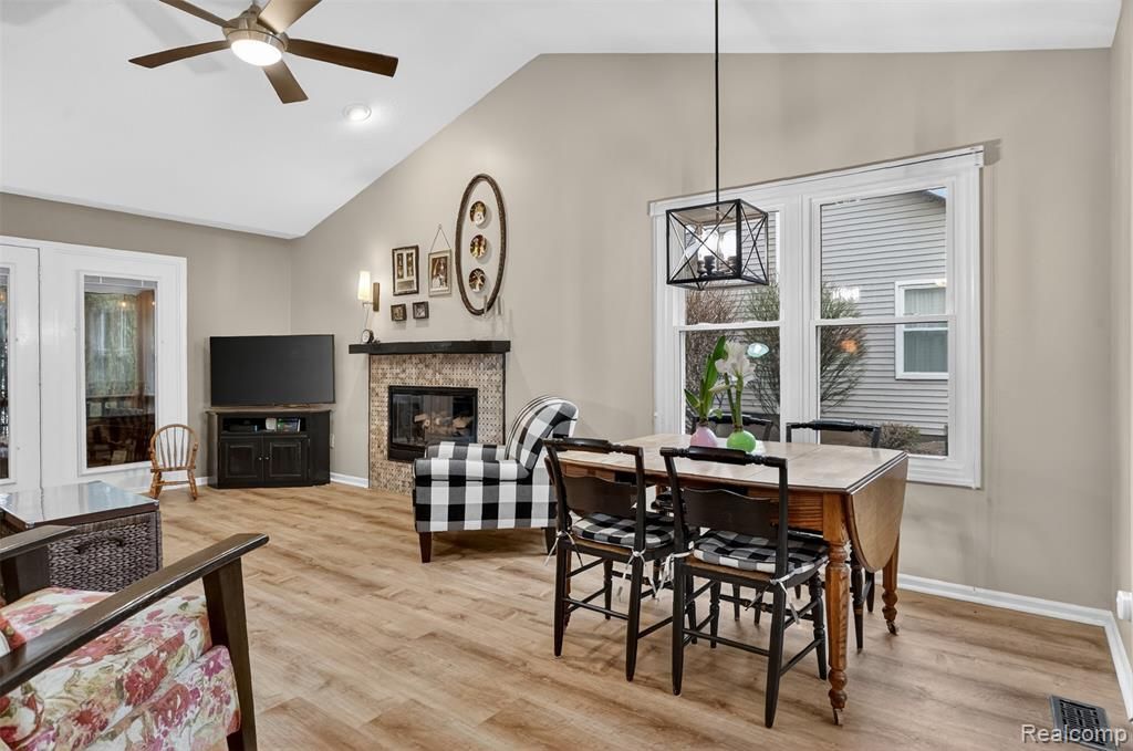 Better-than-new and move-in ready! This immaculate 2 bedroom 2.5 bath end-unit ranch in sought after "Fox Ridge" features pride of ownership throughout! Step into this home featuring soaring cathedral ceilings, a stunning gas fireplace and beautiful luxury-vinyl tile throughout the main floor. Enjoy quiet evenings reading a book or entertain guests on your privately screened Sun Porch. Beautifully renovated kitchen with custom features throughout and granite countertops. The finished basement offers plenty of extra living space, a second living room, nonconforming 3rd bedroom, half bath, sewing/hobby area, workshop with workbench and ample storage throughout. The Howell community is a treasure-trove of entertainment including Downtown Howell's distinguished Historical Carnegie Library, extraordinary events singular to Howell such as the Ballonfest, Melonfest, Fantasy of Lights, Howell Opera House and the infamous Tomato Bros. Diamonds & 2-Fogs Restaurants.