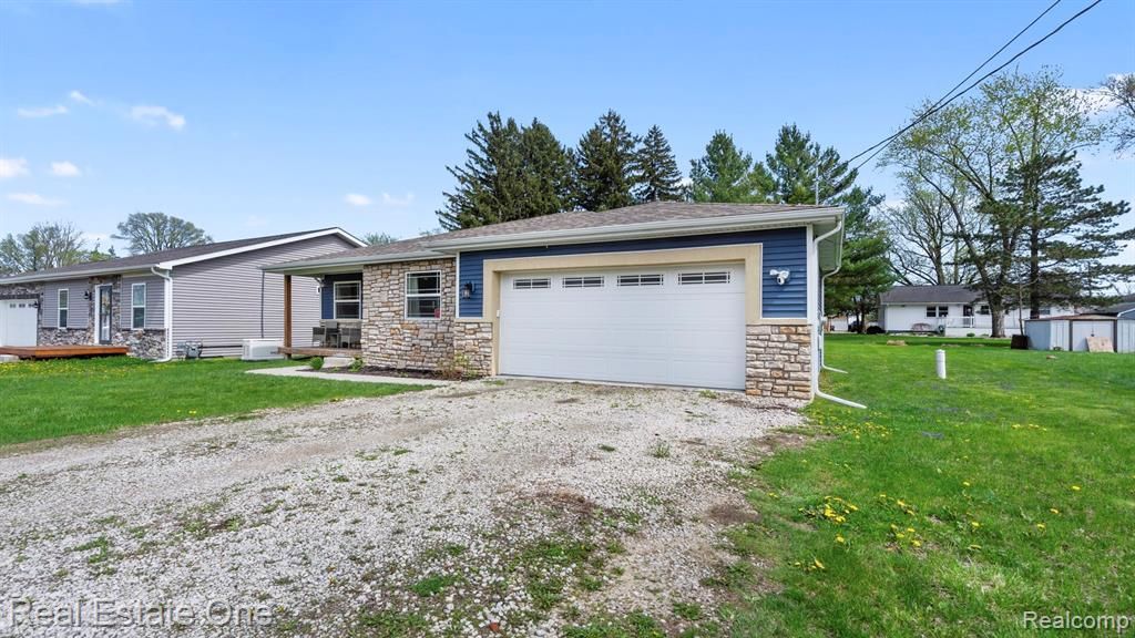 Positioned at 15586 Pine ST in Monroe Charter Township, MI, this single-family residence, built in 2018, offers an attractive property experience in great condition. The kitchen serves as a central point for culinary creation, featuring elegant stone countertops that provide ample surface for meal preparation. Stylish shaker cabinets offer abundant storage solutions, complementing the decorative backsplash that enhances the overall aesthetic. Within the living room, a welcoming fireplace creates an inviting atmosphere for quiet evenings or spirited gatherings. The open floor plan provides an expansive sense of space, allowing for versatile arrangement and comfortable enjoyment. The residence includes two well-appointed bathrooms, providing convenience and comfort for occupants. One of these private spaces features a double vanity, offering enhanced functionality for daily routines. Beyond the interior, an inviting patio awaits, offering a delightful setting for outdoor enjoyment. The convenience of a dedicated laundry room simplifies daily tasks, and three comfortable bedrooms provide restful retreats. This property offers a harmonious blend of refined design and practical amenities, ready to inspire a delightful living experience.