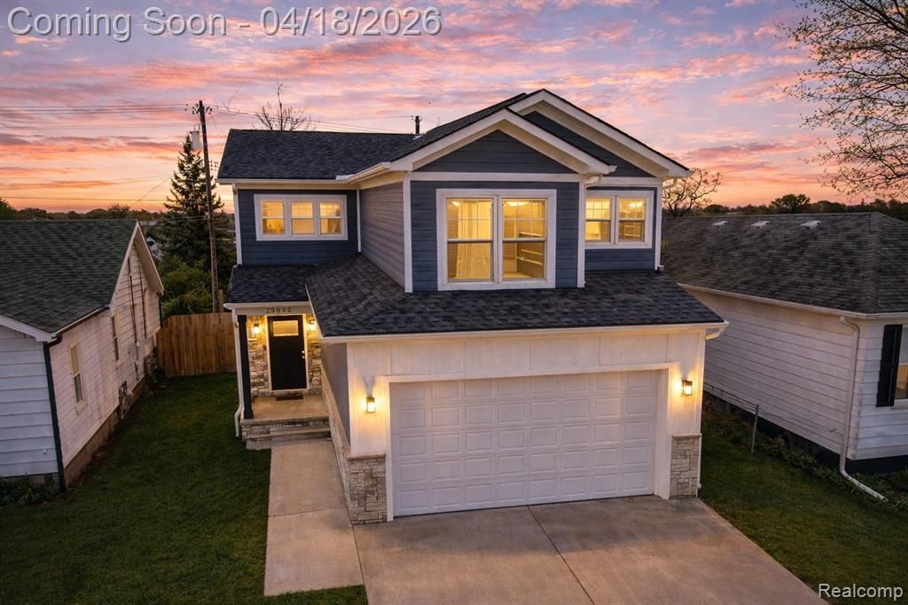 Welcome home to this beautifully built 2024 colonial offering the perfect blend of modern design and everyday comfort. From the moment you arrive, the clean curb appeal, stone accents, and inviting covered entry set the tone for what’s inside. Step through the front door into a bright, open-concept main level designed for both living and entertaining. The spacious living room centers around a sleek electric fireplace, creating a warm focal point while flowing seamlessly into the dining area and kitchen. Rich wood flooring adds depth and contrast throughout. The kitchen is both stylish and functional, featuring stainless steel appliances, ample cabinetry, and a large island that anchors the space—perfect for gatherings or casual meals. Upstairs, you’ll find three well-sized bedrooms, including a comfortable primary suite, along with two full bathrooms and the convenience of second-floor laundry. Thoughtful layout and neutral finishes make each space feel light, open, and move-in ready. The unfinished basement offers additional potential for storage, recreation, or future finishing. Out back, enjoy a fully fenced yard with a deck—ideal for relaxing, entertaining, or simply enjoying your own outdoor space. Complete with a 2-car attached garage, central air, and modern mechanicals, this home delivers low-maintenance living with the peace of mind of newer construction. Conveniently located in Hazel Park with easy access to nearby amenities, this is a home that truly checks all the boxes.