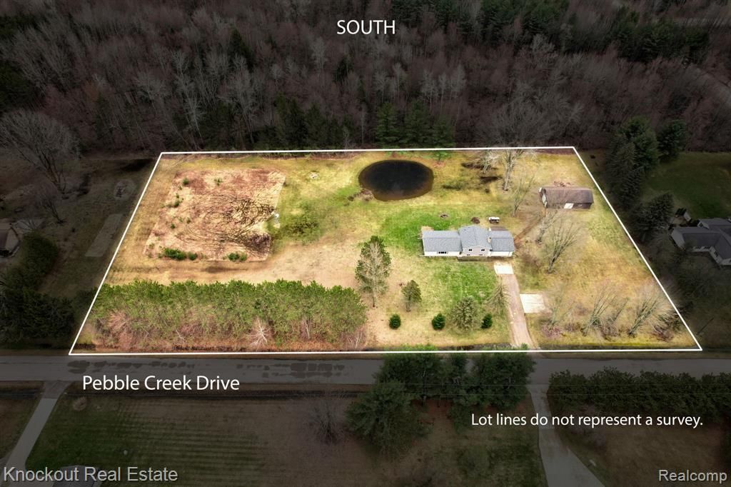 Designed for your next level- modern updates, open space, and a setting that feels like an escape. Tucked away on a quiet dead-end road just minutes from state land, and convenient access to M-15 & M-46, this just under 4-acre property offers peaceful seclusion and modern updates. The 48x24' pole barn is a dream setup, complete with a cement floor, 220 electric, insulation, heat, and air compressor lines—ideal for hobbies, storage, or a workshop. This 2,000 sq ft home has been transformed within the last three years, major improvements include a new roof, vinyl windows, Coleman furnace and A/C, Sterling water filtration system, and gutters—giving you peace of mind. The main level is a true showstopper, taken down to the studs and reimagined with a stunning open-concept design. Rich textures and thoughtful finishes shine throughout—featuring two-toned LVP flooring, a knotty pine accent ceiling, and beautifully crafted two-tone soft-close shaker Kraftmaid cabinetry with warm amber brown uppers and bold navy lowers. Quartz veined countertops and high-end stainless steel appliances elevate the space, while the 11-foot island with a statement gas range and sleek flush-mount hood anchors the kitchen as the heart of the home. Natural light pours in through the sliding glass door, leading to serene views of your private pond and wooded backdrop. The updated half bath features a stylish vanity and hexagon tile, while upstairs offers a chance to add your personal finishing touches, including a primary bedroom with accent ceiling and LVP flooring already in place. Downstairs, the cozy lower level invites you to unwind by the wood-burning brick fireplace, with daylight windows adding warmth and brightness. A spacious laundry/utility area provides convenient walk-up access to the garage. If you’ve been searching for a home that combines modern design, rustic character, and a peaceful, nature-filled setting—this is the one.