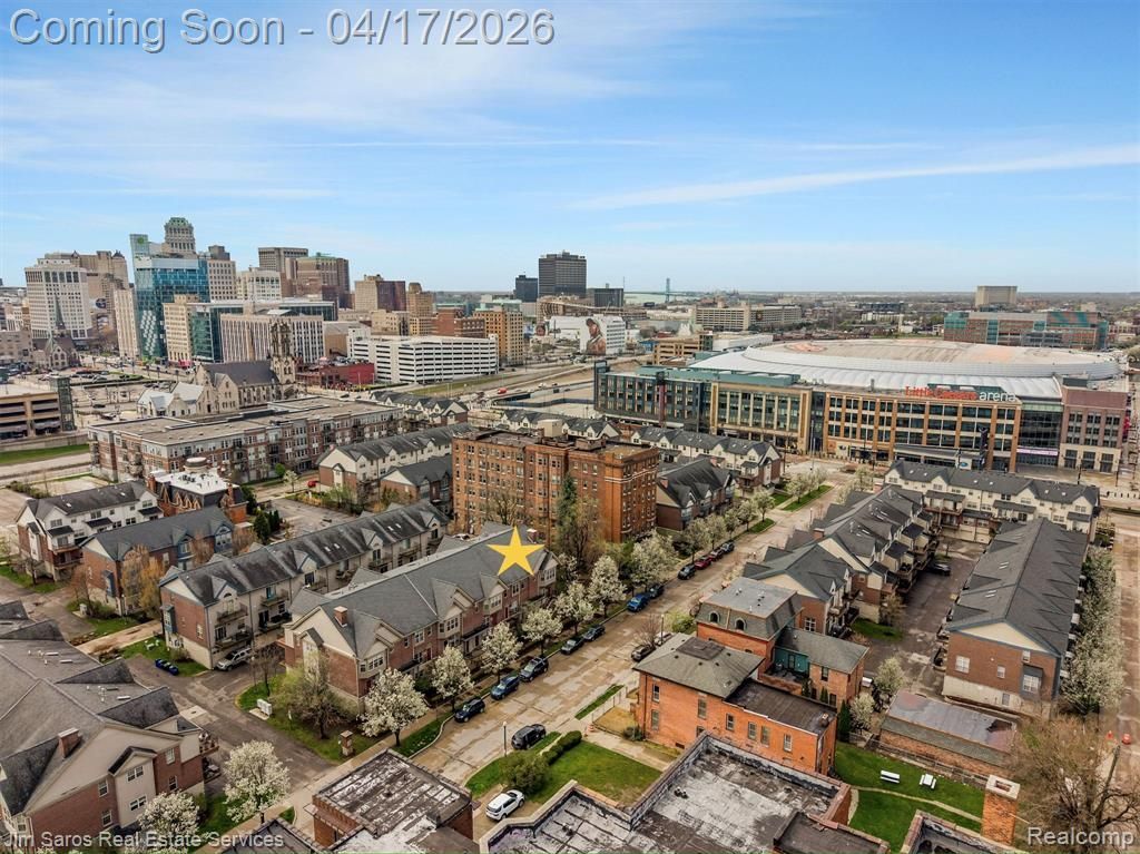 The best of Detroit at your doorstep. This spacious 2,150 SF townhome blends walkable city living with a bright, welcoming interior, impressive city views, and a private two-car garage. This prime Brush Park location is steps from Detroit’s premier sports, entertainment, and dining destinations, including Little Caesars Arena, Comerica Park, Ford Field, and the Fox Theatre, as well as neighborhood favorites such as Bar Pigalle, Grey Ghost, Lena, Bodega, and John R Park. Inside, cherry wood floors run throughout the main level, where an open-concept kitchen, dining, and living space is anchored by a fireplace, vaulted ceilings, and abundant natural light overlooking Adelaide Street. This level also includes two bedrooms, a full bathroom, laundry room with wash tub, and a private balcony, ideal for morning coffee or evening cocktails.The upper level features an oversized primary suite with a sitting area, skylight, fireplace, walk-in closet, and ensuite bath. Generous storage is found throughout, including well-sized closets and a built-in overhead garage storage system. Parking is effortless with dedicated space for three vehicles: a private two-car garage, a deeded space directly behind it, and eligibility for neighborhood residential permit parking. Easy access via the QLine to the Detroit Institute of Arts, Museum of Contemporary Art Detroit, the riverfront, and more. Eastern Market and Whole Foods are also within walking distance. Enjoy effortless city living. Reasonable monthly dues cover water, trash, snow removal, and all exterior grounds and building maintenance. NEZ Homestead Eligible.